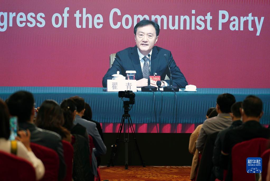 10月21日,中国共产党第二十次全国代表大会新闻中心举行记者招待会。生态环境部党组成员、副部长翟青围绕“建设人与自然和谐共生的美丽中国”主题与记者交流。