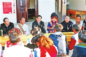 12月1日,陈豪在维西县永春乡庆福村与各族干部群众代表、驻村工作队员座谈,宣讲党的十九大精神,共商脱贫攻坚大计。记者 张彤 摄