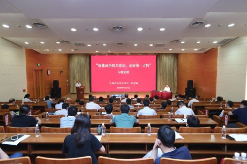 7月17日,根据中央和国家机关工委统一部署,中国科协党组书记、常务副主席、书记处第一书记怀进鹏围绕“强化政治机关意识,走好第一方阵”,以“牢记使命、坚定创新自信、凝心聚力建设世界科技强国”为题,为中国科协机关和直属事业单位党员、干部讲专题党课。党组副书记、副主席、书记处书记徐延豪主持会议。