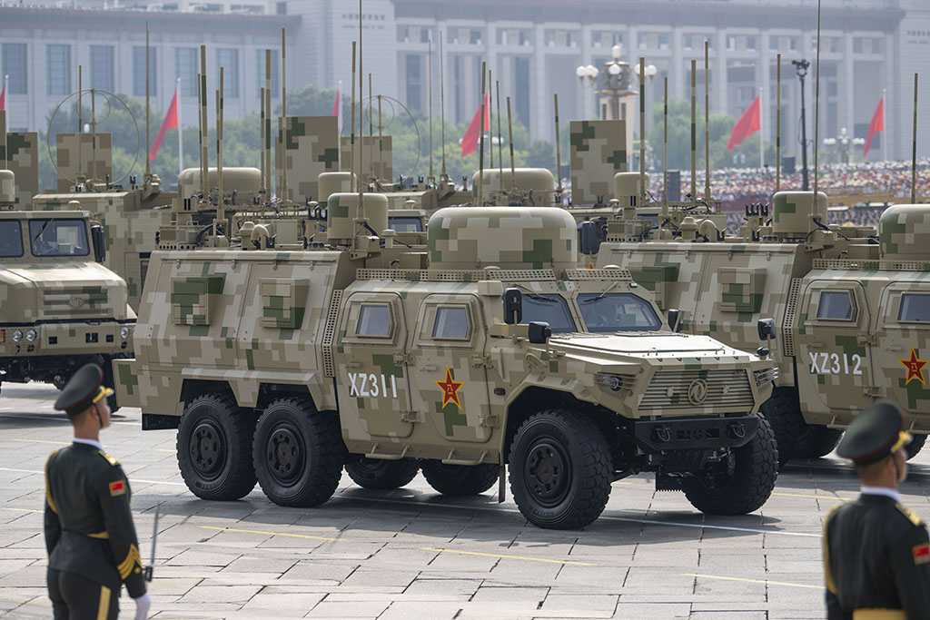 9月3日,纪念中国人民抗日战争暨世界反法西斯战争胜利80周年大会在北京隆重举行。图为信息支援方队接受检阅。