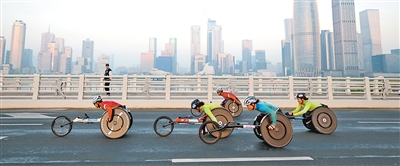 残特奥会女子全程马拉松T54级参赛选手在比赛中。 |