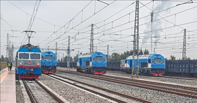 图为重载群组列车在位于内蒙古包头市的包神铁路集团万水泉南站南场试验开行。 |