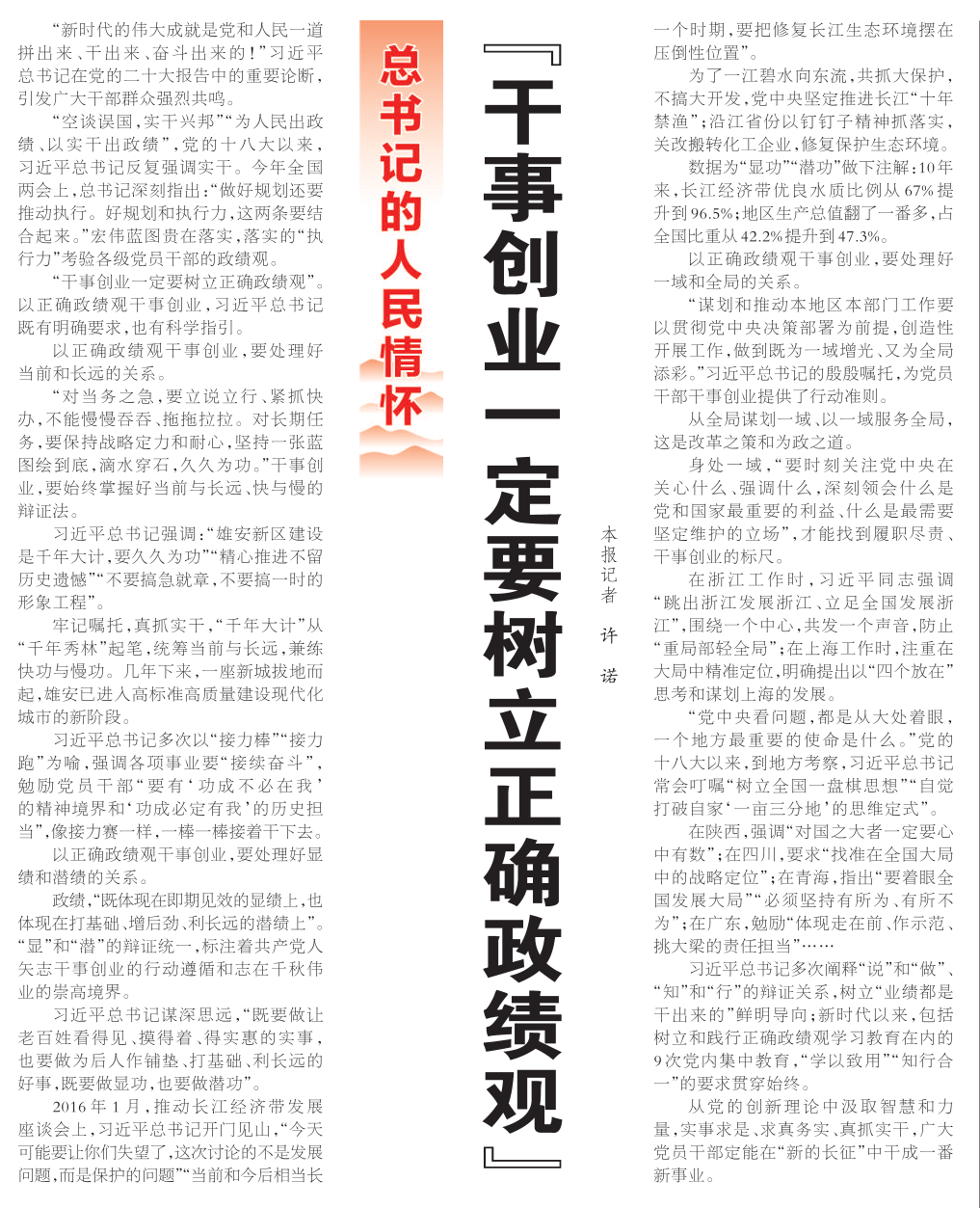 “干事创业一定要树立正确政绩观”(总书记的人民情怀)
