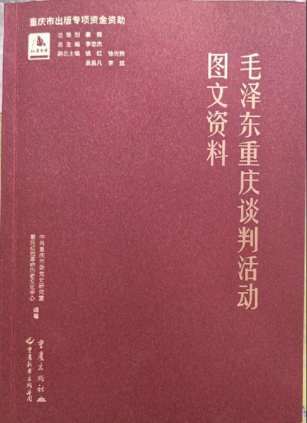 近日,由重庆市委党史研究室和重庆红岩革命历史文化中心联合编著的《毛泽东重庆谈判活动图文资料》由重庆出版社出版。该书内容丰富,图文并茂,系统研究、考证和介绍了毛泽东在重庆谈判期间的活动旧址及其保护利用情况;补充、丰富了毛泽东在渝活动的重要史料。主体部分以时间为序,对毛泽东在渝活动进行逐日编写;两个附录,一个是史实钩沉,对毛泽东重庆谈判行程和旧址进行全面考证,另一个是部分旧址和文物介绍。该书旨在多维度再现历史第一现场,生动反映毛泽东赴重庆谈判的伟大壮举,同时填补相关研究空白,为活化利用毛泽东在渝红色资源提供支撑。