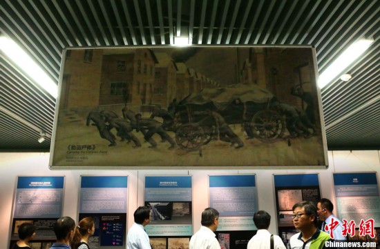 9月18日,《奥斯维辛集中营纳粹大屠杀罪行展》在侵华日军南京大屠杀遇难同胞纪念馆开展,展览共含百幅照片、实物。当天是世界反法西斯战争胜利68周年纪念日,也是“九一八事变”爆发82周年之日。该展览由4所二战题材纪念馆——南京大屠杀遇难同胞纪念馆、波兰奥斯维辛比克瑙国家博物馆、中国人民抗日战争纪念馆、上海犹太难民纪念馆联办。中新社发 泱波 摄