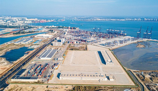 坚持开放合作、互利共赢是中国式现代化的必然要求,党的二十届四中全会对扩大高水平对外开放作出重要部署。封关运作是海南自由贸易港建设、打造对外开放重要门户的重大标志性、节点性工程。图为2025年1月12日,在海南洋浦经济开发区拍摄的洋浦港封关运作项目和配套工程。 新华社记者 蒲晓旭/摄
